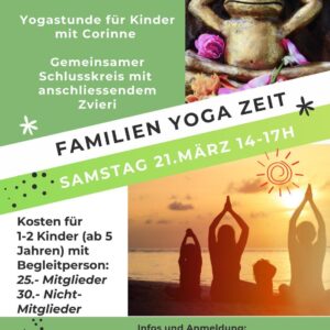 Familien Yoga Zeit – Samstag, 21. März 2026 von 14:00 bis 17:00 Uhr Taucht gemeinsam in die Welt des Yoga ein! Unser Familien-Yoga-Nachmittag bietet euch eine wunderbare Gelegenheit, gemeinsam zur Ruhe zu kommen, euch zu bewegen und zu entspannen. Programm: • Gemeinsamer Einstieg für Kinder und Erwachsene • Yogastunde für Erwachsene mit Diana • Parallel […]